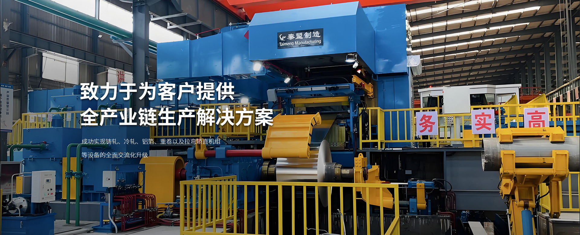 洛陽泰盟機械制造有限公司成立于2008年12月位于中國(河南)自由貿易試驗區洛陽片區高新開發區青城路1號,緊鄰洛陽繞城高速高新區站和高新區主干道河洛路,地理位置優越。擁有固定資產5000萬元,屬于有限責任公司、民營企業,高新技術企業,公司已通過ISO9001質量管理體系認證。  公司主要部門有銷售部、設計部、生產部、采購部、財務部。公司主要為鋁加工企業提供規劃布局,為鋁加工企業提供生產用的整套裝備的設計、制造、安裝調試,承接鋁加工生產裝備交鑰匙工程。  為主要客戶明泰鋁業、東興嘉宇、鑫泰鋁業、桐昆集團、大亞新能源、中州鋁業、銘島鋁業、廣東三英、云鋁股份、佛山鋁業、萬達鋁業、金濤集團、山東創新、龍鼎鋁業及國內其它鋁加工企業配套生產各種鋁鑄軋機、冷軋機、箔軋機、熱軋機組及其精整設備拉彎矯直機、橫切機、重卷機、輥涂線、開卷機、卷取機、聯合齒輪箱等,廠區占地面積82畝,定員115人,設有獨立的鉚焊車間,裝配車間配有裝配平臺,液壓泵站,整套設備出廠前經過整體試裝并液壓試動作。公司設備有110鏜床、130鏜床、160落地鏜床、200落地鏜床、1.6米*6米臥車、1.3米*5米臥車、2米滾齒機、4*10米數控龍門加工中心及其它輔助設備。  公司成立以來設計制造的寬幅2450㎜連鑄連軋機組。國內現有生產速度較快(每分鐘3.2米),較薄(2.8mm)的高速鑄軋機組。  目前的綠色短流程60條連鑄連軋機組,全交流冷軋機組、2000/2200鋁箔軋機以及2300六輥冷軋機組,得到了客戶的高度認可。  目前,我公司已成功實現鑄軋、冷軋、鋁箔、重卷以及拉彎矯直機組等設備的全方面交流化升級。這一重要舉措不僅有助于客戶顯著降低生產成本,還能有效提升其經濟收益,從而在激烈的市場競爭中占據更有利的位置。通過設備的交流化改造,我們致力于為客戶提供更加有效、節能且穩定的全產業鏈生產解決方案,共同邁向更加繁榮的未來。